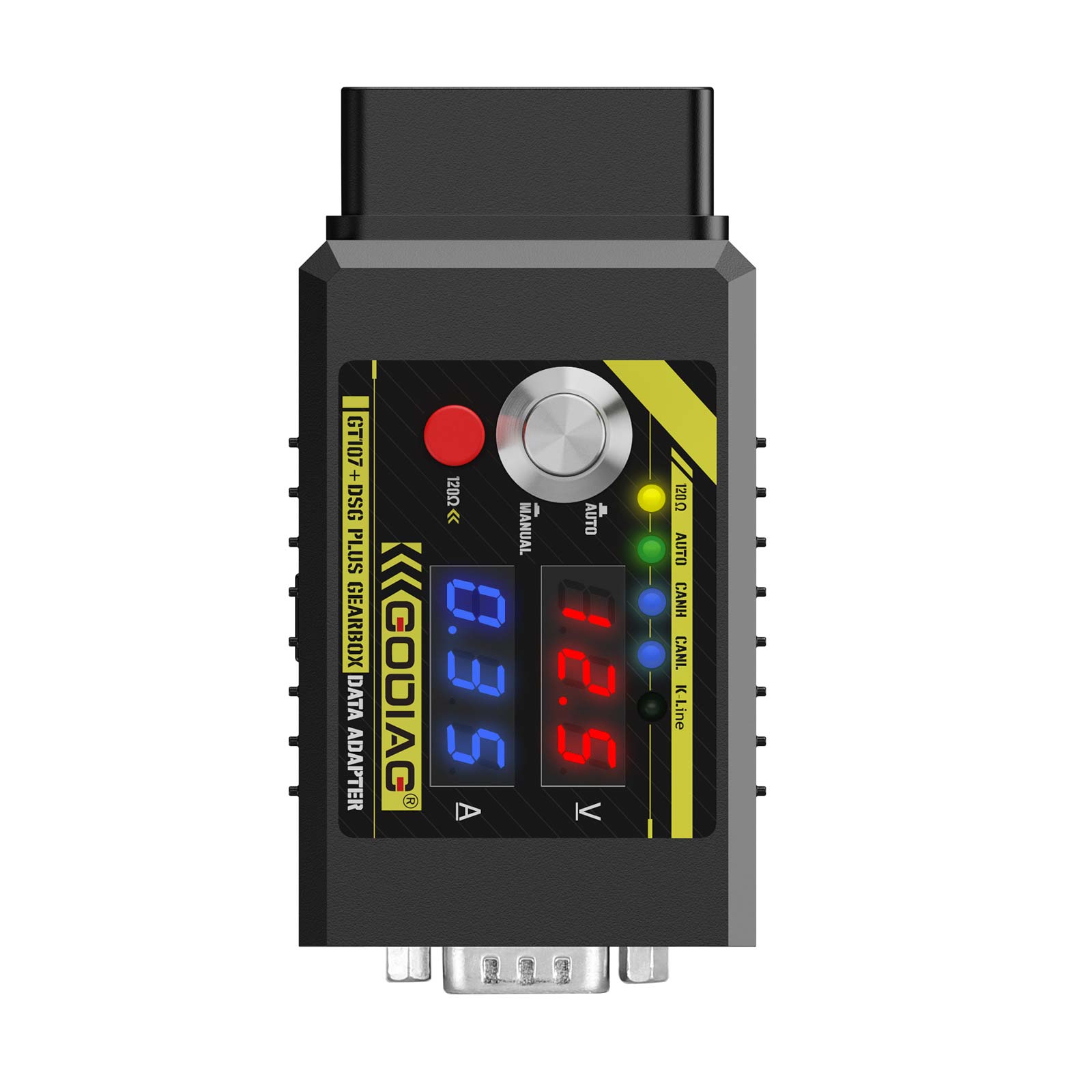 3.GODIAG GT107 + analog ignition switch is in “manual” mode if the ignition switch is pressed, the adapter displays the current working voltage of the power supply, and the current working current of gearbox ECU.
