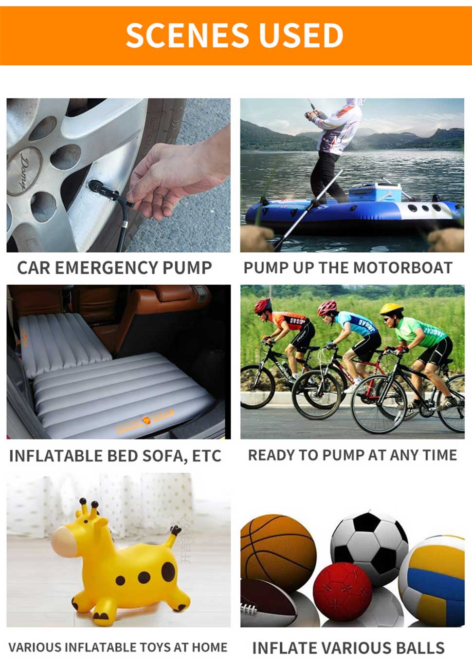 Applicable to a varity of products for inflation, car tires, ball children's toys, etc.